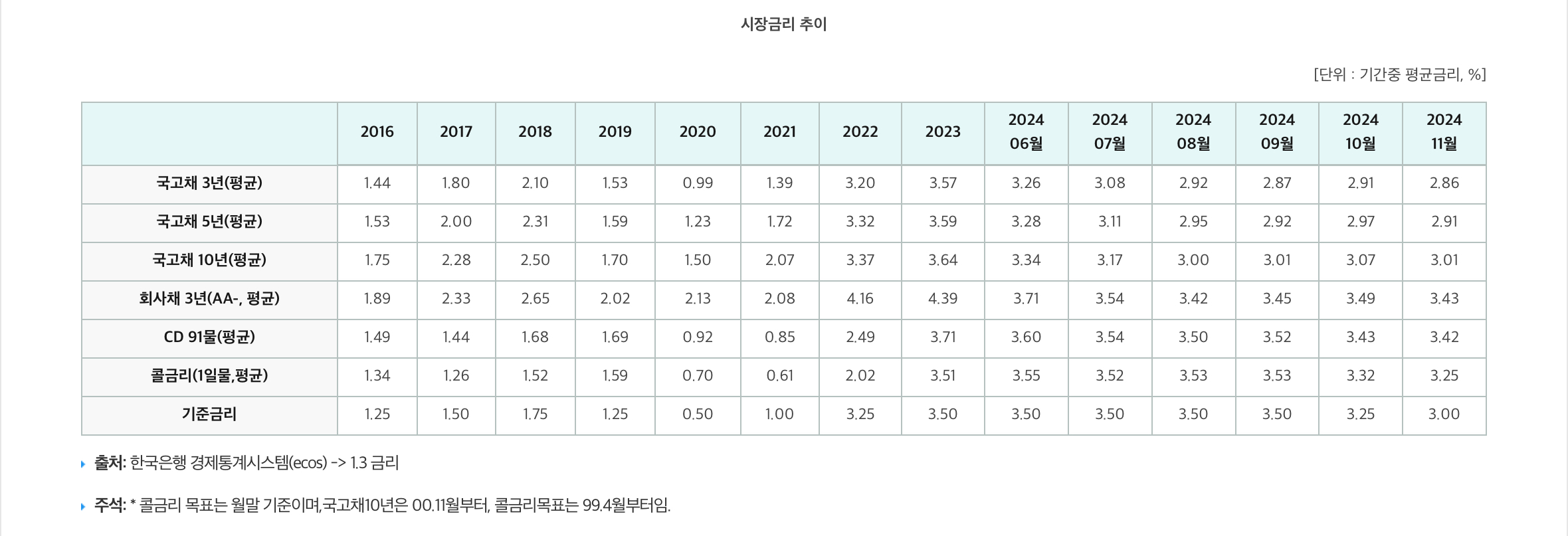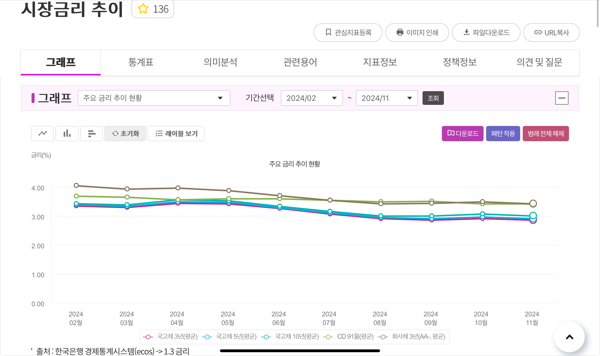 사이트에 방문해 '시장 금리 추이'를 검색하면 찾을 수 있습니다.